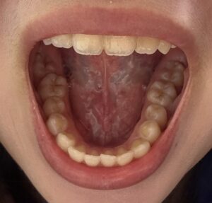 上下の歯並びをみてみますと、写真からはそれほど歯並びが悪いようにはみえません。