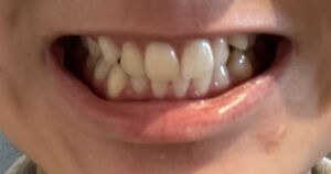 歯茎から前歯が斜めに生えてしまっています。