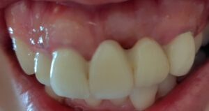 前歯のブリッジの状態のご相談ですが、右上1番前歯と左上3番犬歯がブリッジの土台となっているようです。